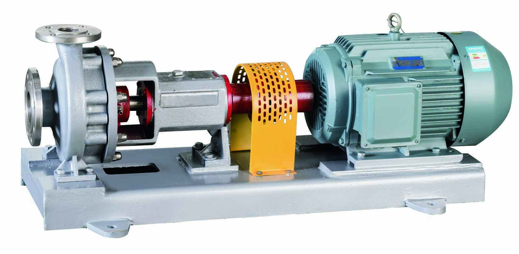 臥式后開(kāi)門結(jié)構(gòu),泵頭與電機(jī)采用聯(lián)軸器連接,安裝在底板上,葉輪為后開(kāi)式,三只軸承,軸封采用外裝式機(jī)械密封,設(shè)有冷卻裝置,軸承體的油位用油鏡觀察;結(jié)構(gòu)緊湊合理。該泵在泵體上鑄有支腳,可承受來(lái)自管路的荷載并直接傳給基礎(chǔ),這樣泵轉(zhuǎn)子不會(huì)因泵承受荷載而產(chǎn)生彎曲,從而保證了軸承和機(jī)械密封具有最佳的使用壽命。維修時(shí)不需將與泵體相聯(lián)的管路打開(kāi),只要打開(kāi)托架與泵體的螺栓,將兩者分開(kāi)就可維修葉輪和機(jī)械密封,簡(jiǎn)易方便。